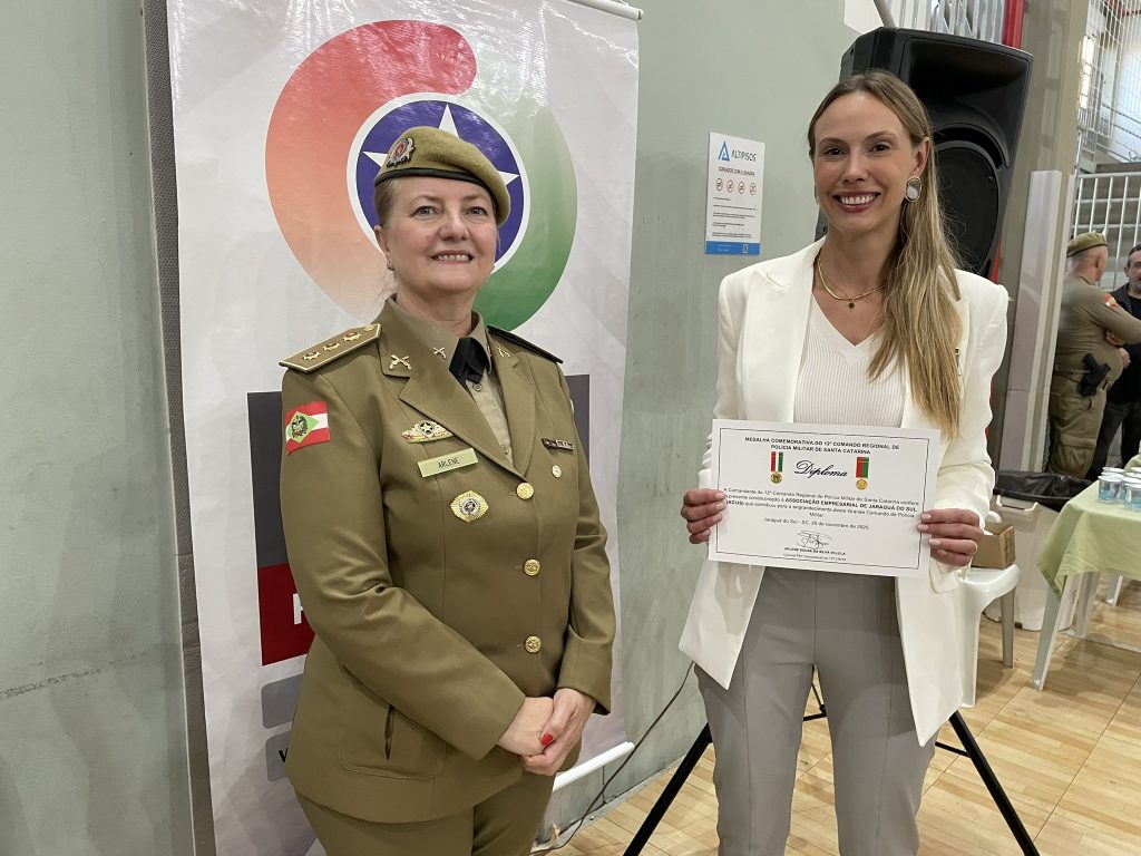 A parceria da Associação Empresarial (ACIJS) e da Câmara de Dirigentes Lojistas de Jaraguá do Sul à área de segurança pública foi reconhecida em solenidade comemorativa ao oitavo aniversário de instalação do 12º Comando Regional e pelo comando do 14º Batalhão de Polícia Militar.