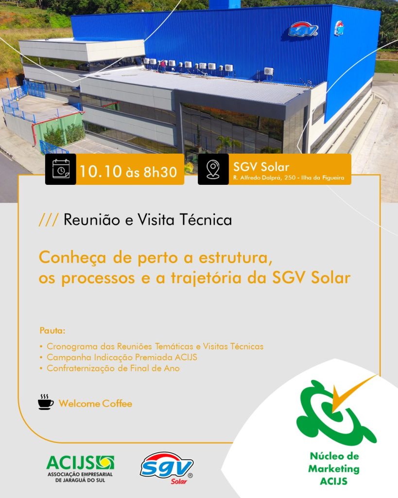 O Núcleo de Marketing realiza reunião e visita técnica no dia 10 à SGV Solar, com o objetivo de conhecer a trajetória, estrutura e os processos da empresa.