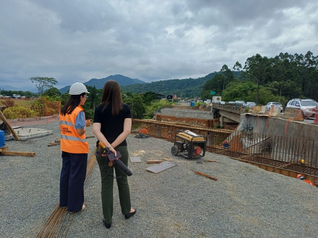 O novo viaduto é a última grande Obra de Arte Especial prevista no projeto de duplicação ao longo dos 9,3 quilômetros entre a interseção com a Rodovia do Arroz e a Ponte Eduardo Ferreira Horn, na divisa entre Guaramirim e Jaraguá do Sul. A engenheira Débora Manukian Patti, fiscal da obra pela SIE, confirmou à vice-presidente de Articulação Institucional da ACIJS, Ana Paula Hauffe Torquato, que a construção do viaduto sobre a linha férrea segue dentro do cronograma, com entrega prevista para o primeiro semestre de 2026.