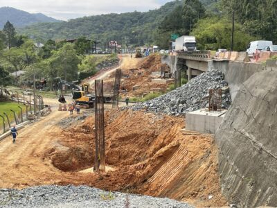 BR-280: obra do novo viaduto em Guaramirim prossegue