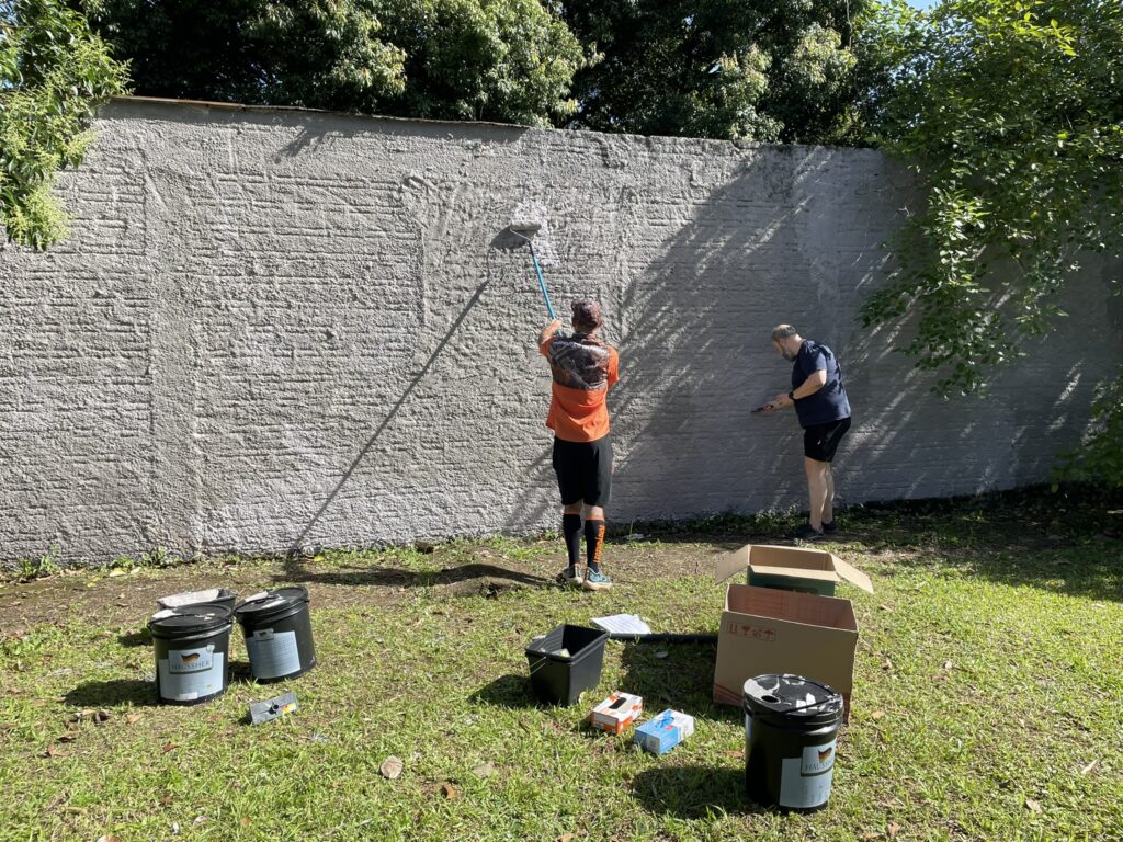 Na manhã de quinta-feira (20), voluntários mobilizados pelos Núcleos Empresariais da ACIJS realizaram a limpeza e pintura de muros pichados na Vila Lalau, próximo à Escola Professor Heleodoro Borges.